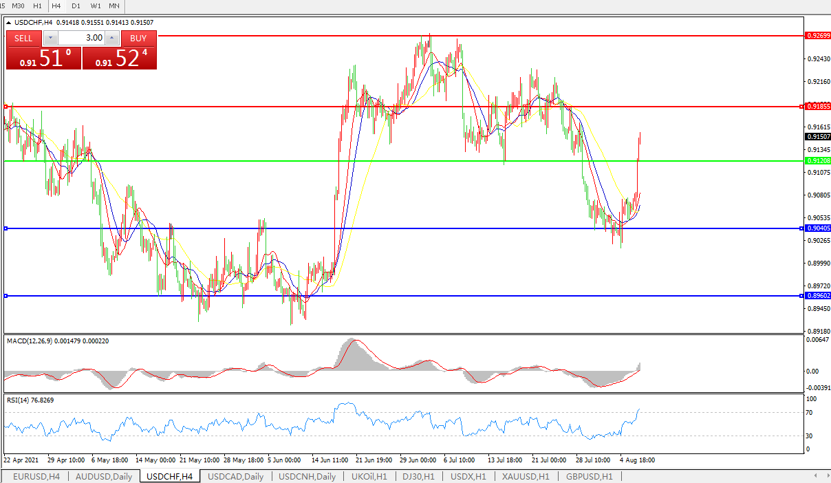 交易策略:0.9120上方看涨,目标0.9185、0.9270
