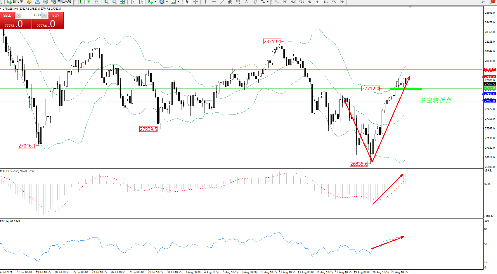 日经225指数8月24日(周二)收盘上涨249.26点,涨幅0.91%,报27743.50点。日本新冠疫苗接种累计达1.198亿剂,41.3%的人口已完全接种疫苗。日本东京新增4220例新冠肺炎确诊病例。日本自民党秘书长二阶俊博:我支持菅义伟连任党首的立场没有改变。计划周三与首相菅义伟举行会议。