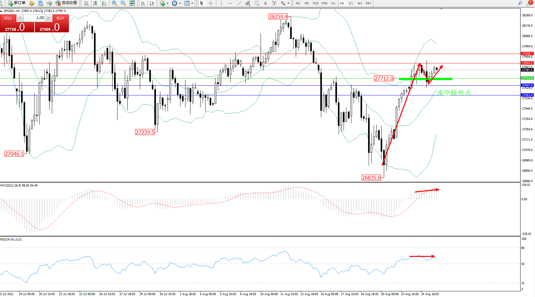 日经225指数8月25日(周三)收盘下跌11.10点,跌幅0.04%,报27721.00点。日本央行审议委员中村豊明:新冠病毒感染病例的增长超过了我们7月份的预期。日本经济可能暂时仍面临疫情带来的下行压力。如果继续接种疫苗,加上医疗状况得到改善,日本经济可能会复苏。必须警惕下行风险,但不觉得经济会下降得很厉害。经济下行压力持续一段时间。预计在暑假期间会出现需求抑制的情况。没有看到经济复苏机制崩溃的情况。被压抑的服务消费需求可能要到年底假期前后才会增加,而不是像最初预期的那样在夏季。