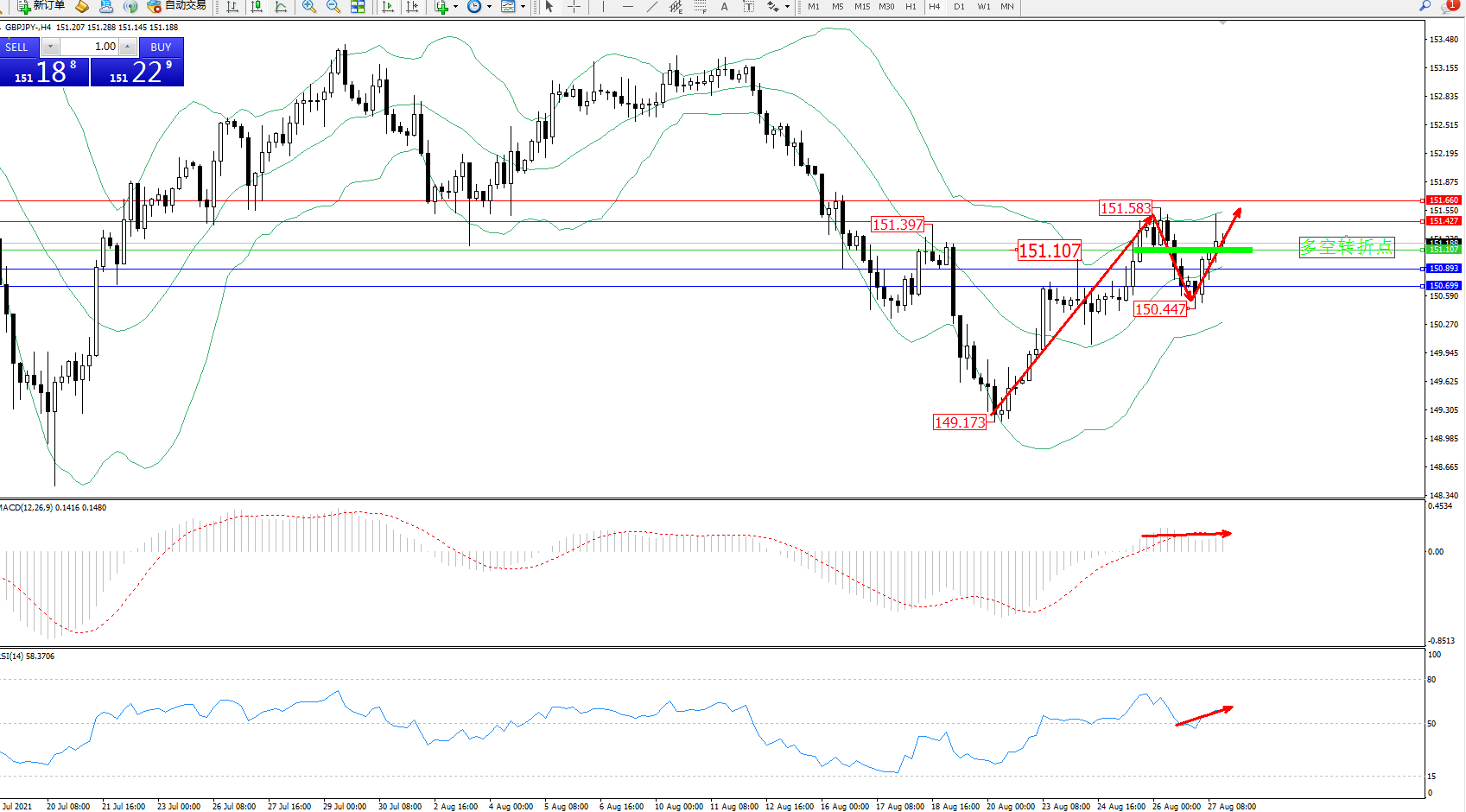 技术点评:多头动力延续布林带指标通道中上轨区间持续震荡上扬,期间多次来回试探中上轨区间节点,多头动力持续向上拉升中,布林带指标呈上行趋势走势中,MACD指标处于0轴线上方多头区域维持整理平移,RSI指标处于50均衡线上方持续震荡中;
