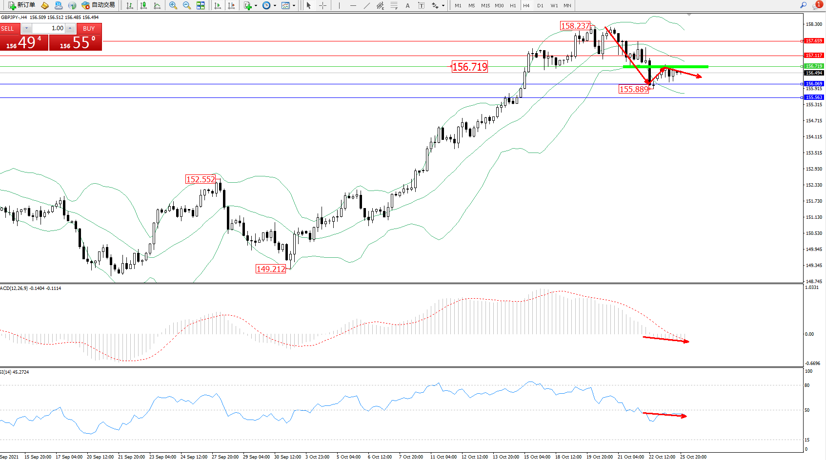 交易策略:156.719下方看跌,目标156.069、155.563