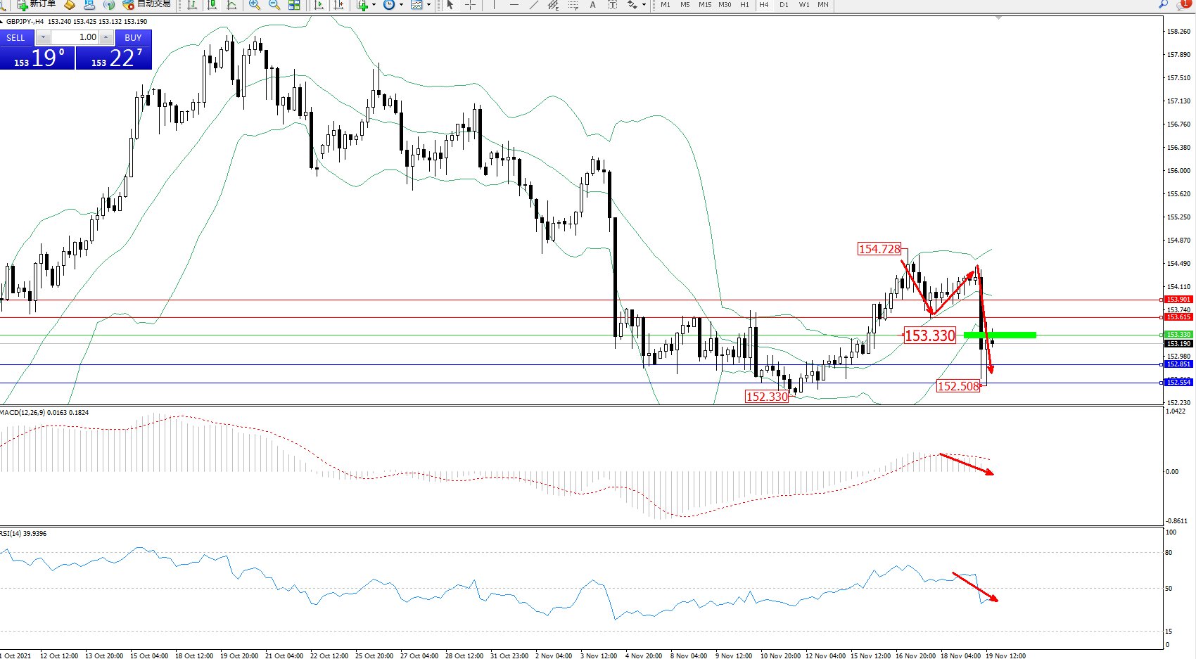 技术点评:高位空头动力急速下挫,跌破布林带指标下轨至152.508位置后得到支撑反转急速回升,纠结于布林带指标下轨附近弱势整理,短期空头动力有进一步下行迹象,布林带指标呈收口走势后开始缓慢张口,MACD指标处于多头区域维持整理平移后开始下行至0轴线附近徘徊,RSI指标空头动力急速下挫至50均衡线下方整理中;
