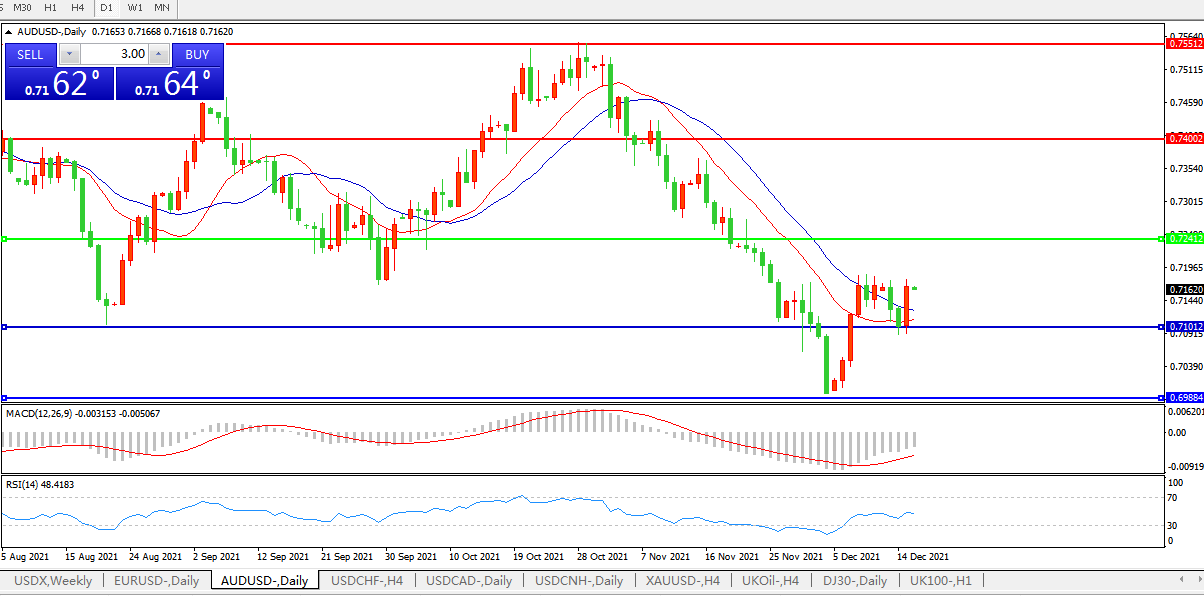 交易策略:0.7240下方看跌,目标0.7100、0.6980