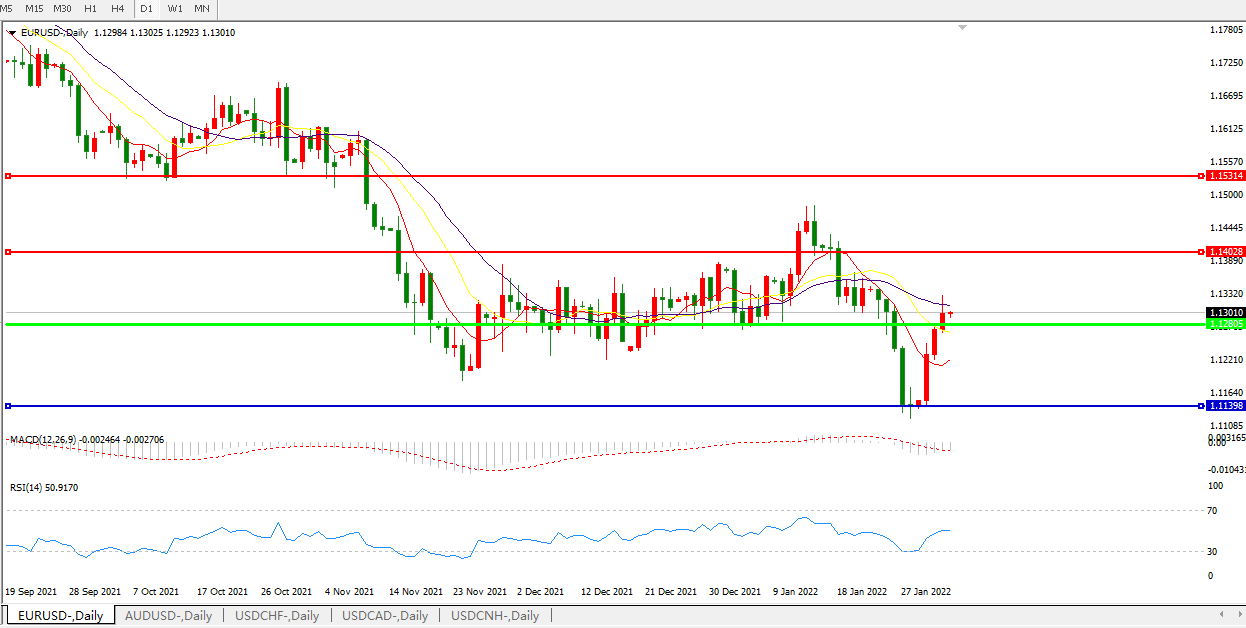 交易策略:1.1280上方看涨,目标1.1400、1.1530