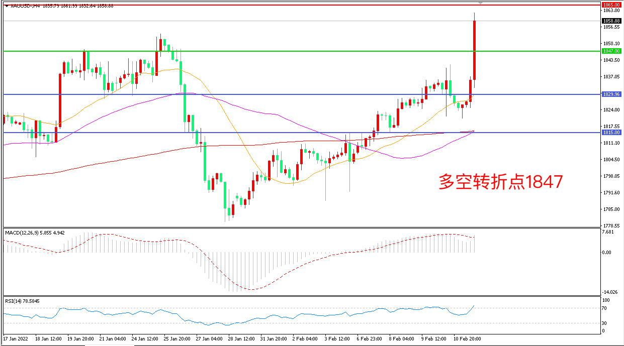 交易策略:在1830.00之上看涨,目标1847.00       1865.00