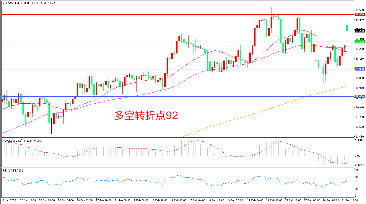 周一(2月21日),俄乌紧张局势继续升温,普京宣布承认顿涅茨克人民共和国和卢甘斯克人民共和国独立,并指示俄军方确保顿巴斯地区和平,俄乌局势升级推动油价再度反弹,美国WTI原油震荡上行,收报91.46美元/桶。与此同时,投资者也在关注重启伊朗2015年核协议的谈判进展,短期看,油价延续高位震荡概率较大。