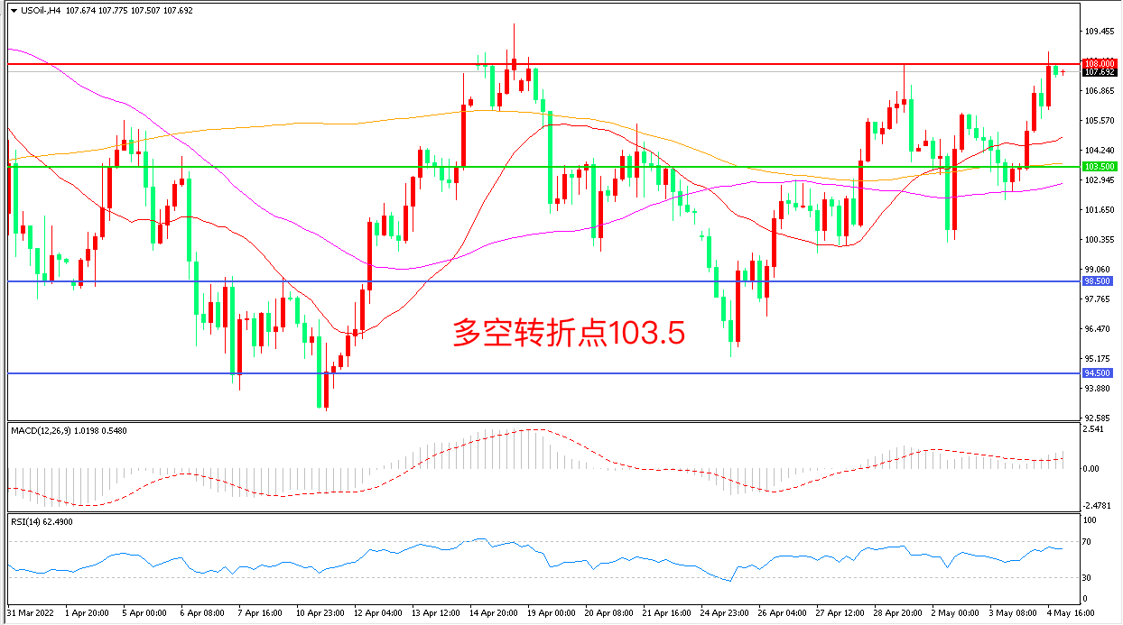 交易策略:在103.50之上看涨,目标105.50 108.00
