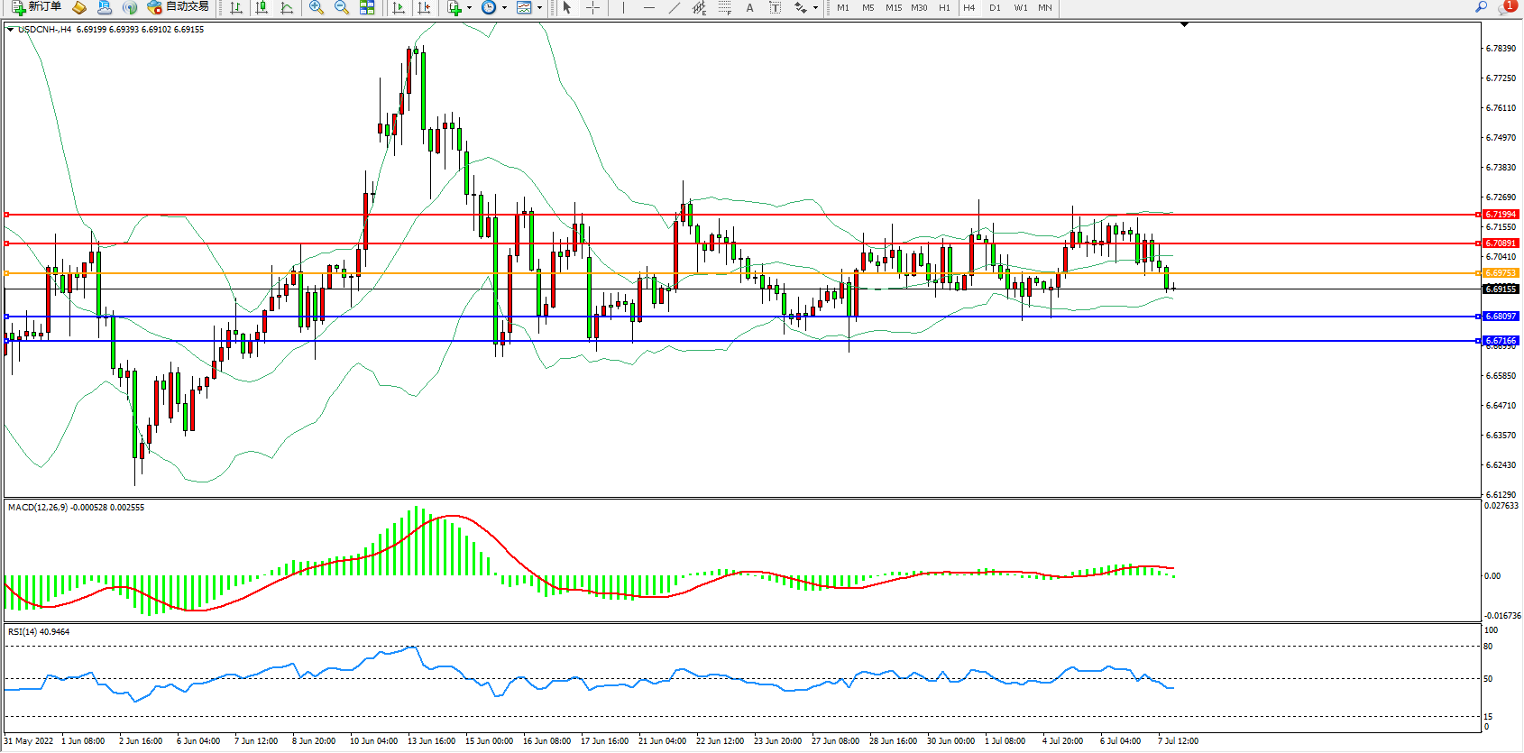 交易策略:6.69753下方看跌,目标6.68097、6.67166