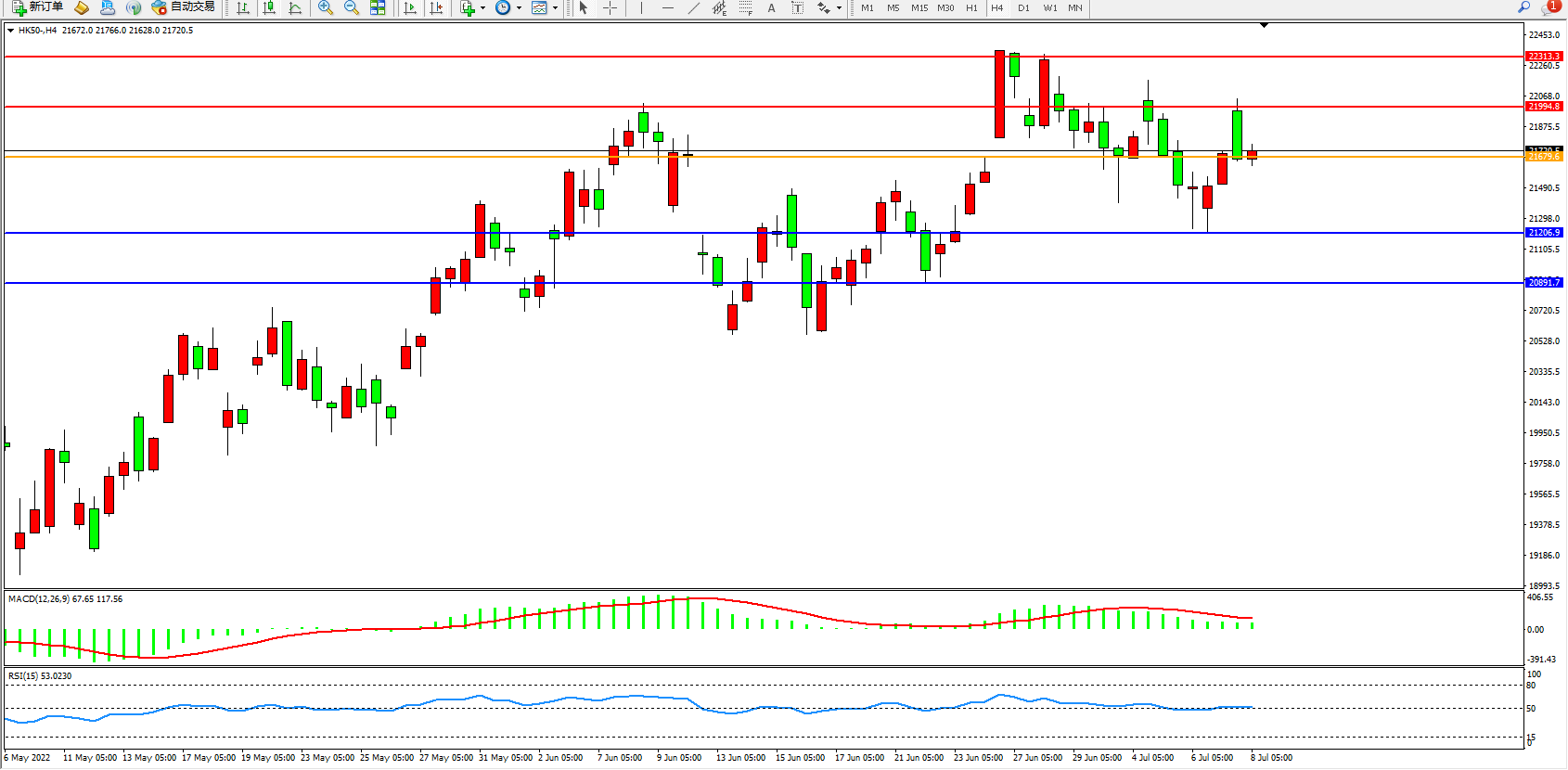 香港恒生指数7月8日(周五)收盘上涨82.2点,涨幅0.38%,报21725.78点;港股主要指数高开低走,三大指数盘中均转跌,截止收盘,恒指、恒生科技指数小幅上涨,分别涨0.38%和0.59%。大型科技股普涨,阿里巴巴收涨约4%,今日南下资金净流入18.46亿港元,大市成交额为1058亿港元。