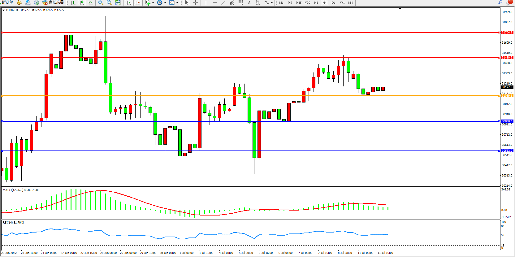 道琼斯指数7月11日(周一)收盘下跌162.63点,跌幅0.52%,报31175.52点;担心全球经济衰退前景的投资者将目光转向美元,美元本月上涨逾2%。经济学家预计美国6月份通胀较上年同期上升8.8%,达到40年来的新高。