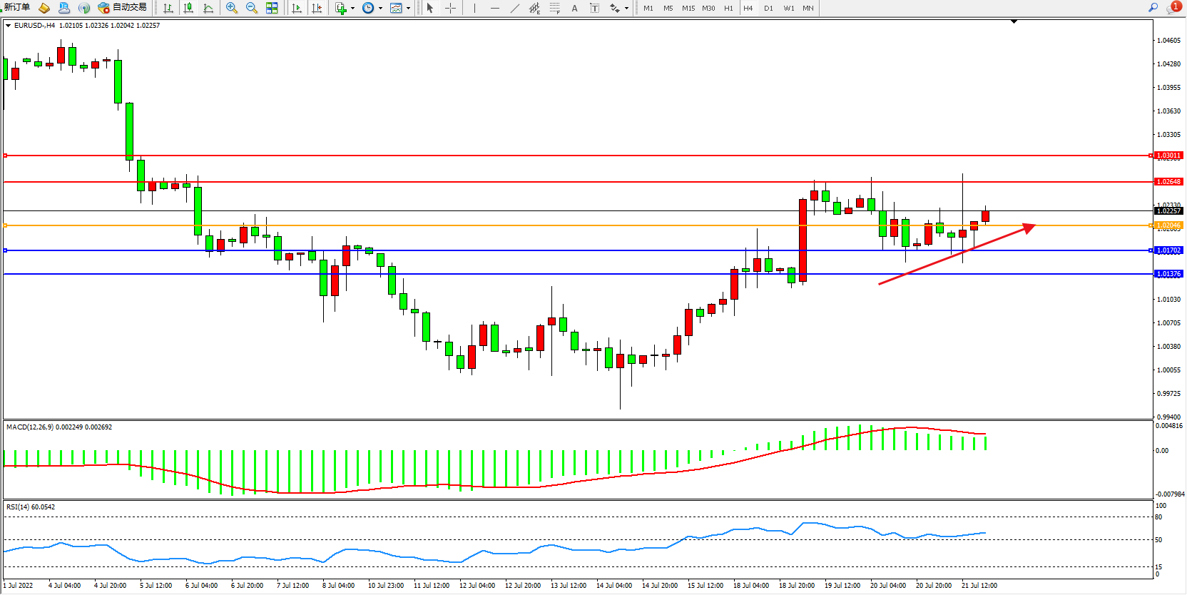 欧元兑美元维持1.02257附近震荡,欧洲央行将三大关键利率均上调50个基点,市场预期加息25个基点,为11年以来首次加息。