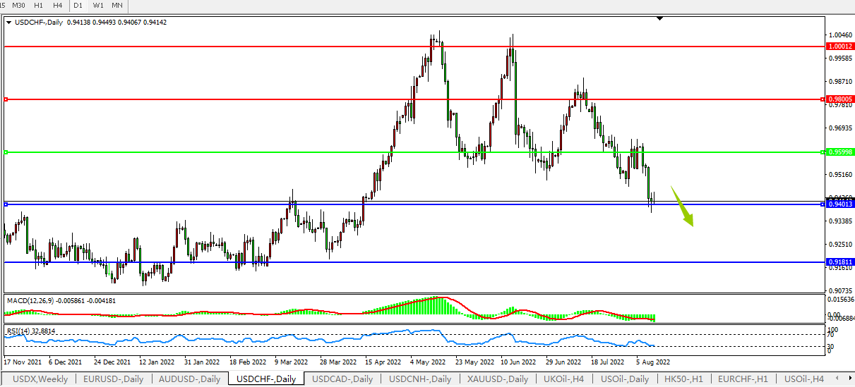 交易策略:0.9600下方看跌,目标0.9400、0.9200
