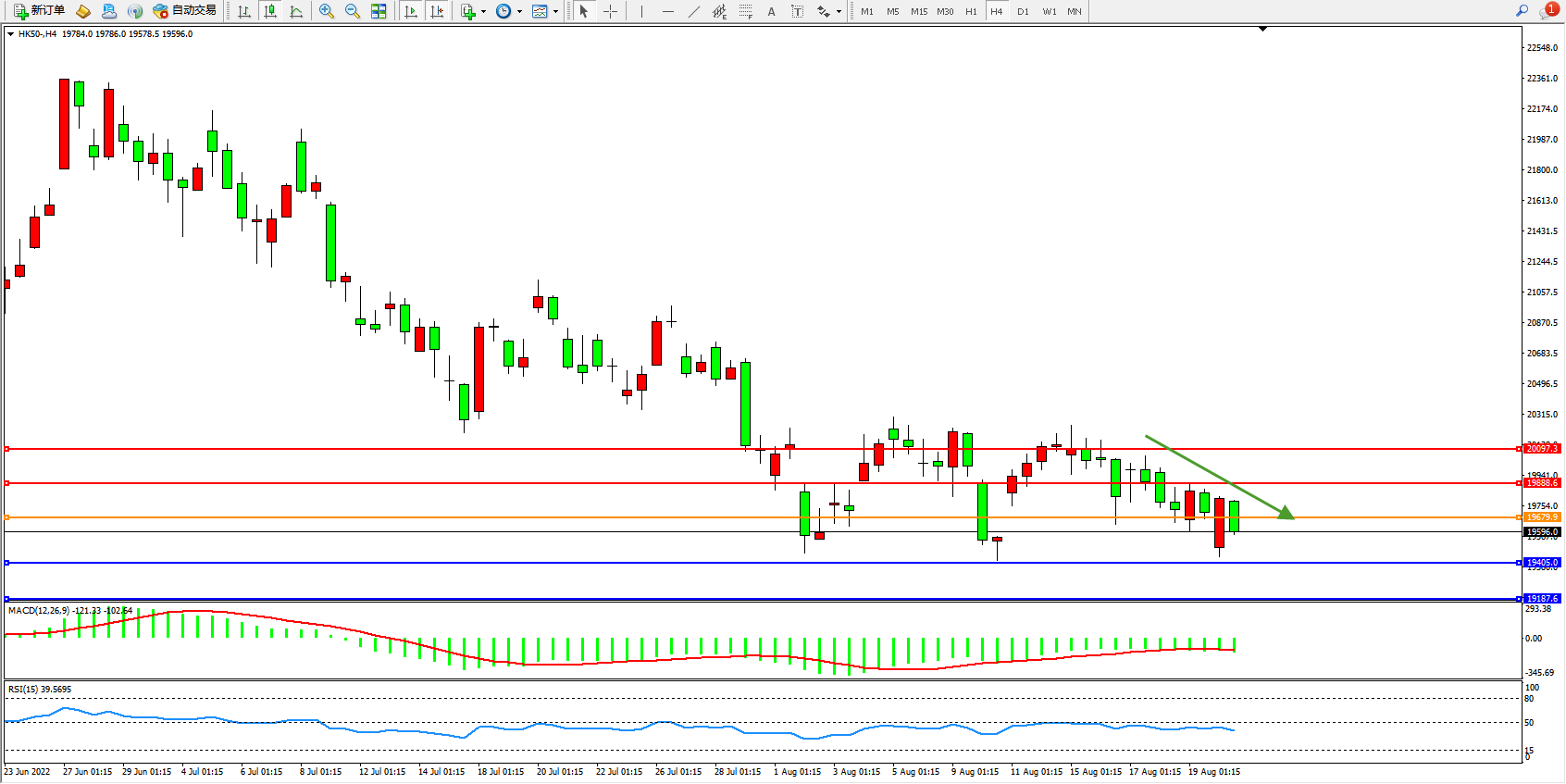 香港恒生指数8月22日(周一)收盘下跌116.05点,跌幅0.59%,报19656.98点;超预期降息并未支撑行情走俏,港股冲高回落,恒生科技指数跌0.96%。大型科技股涨跌参半,网易涨近2%,腾讯跌超1%;南下资金净流入20.91亿港元,大市成交额为821亿港元。