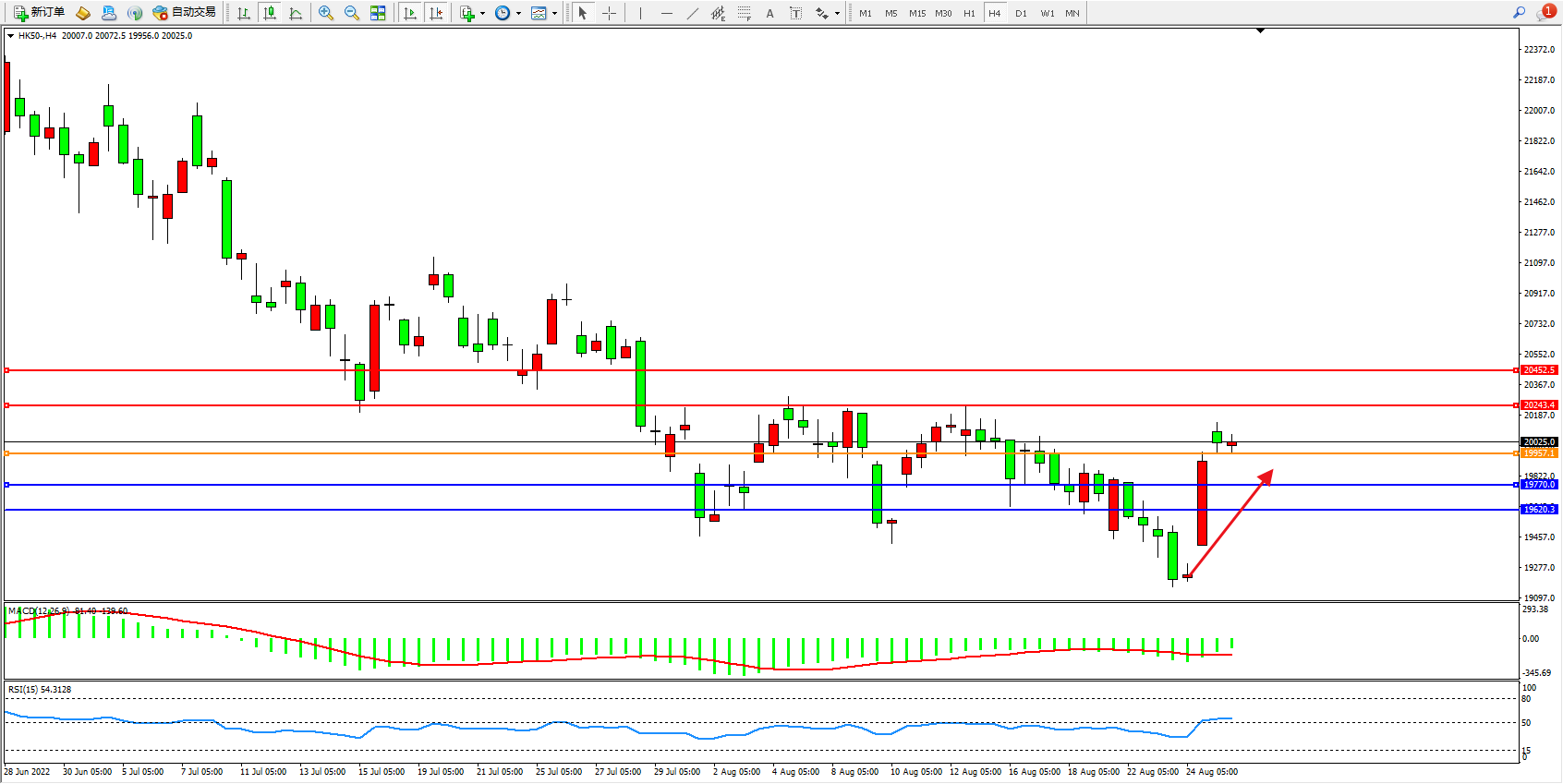 香港恒生指数8月26日(周五)收盘上涨201.66点,涨幅1.01%,报20170.04点;受昨日美股上涨及中概股强劲影响,港股延续涨势,本周总体呈现先抑后扬行情。恒指涨1.01%重回2万点上方,国指、恒生科技指数分别涨1.05%及0.79%。昨日大涨的科技股继续上涨,多家生物医药类企业被机构调研,生物科技股齐涨;政策持续加码,氢能源、光伏纷纷上扬。南下资金全天净流入2.66亿港元,大市成交额超千亿港元。