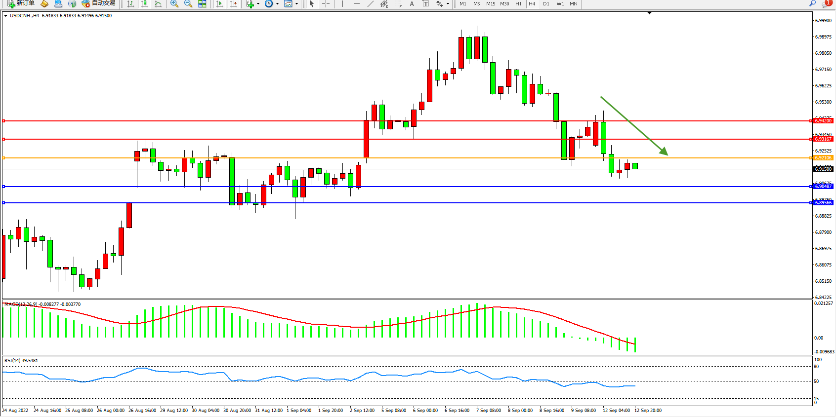 备选策略:6.92106上方看涨,目标6.93167、6.94200