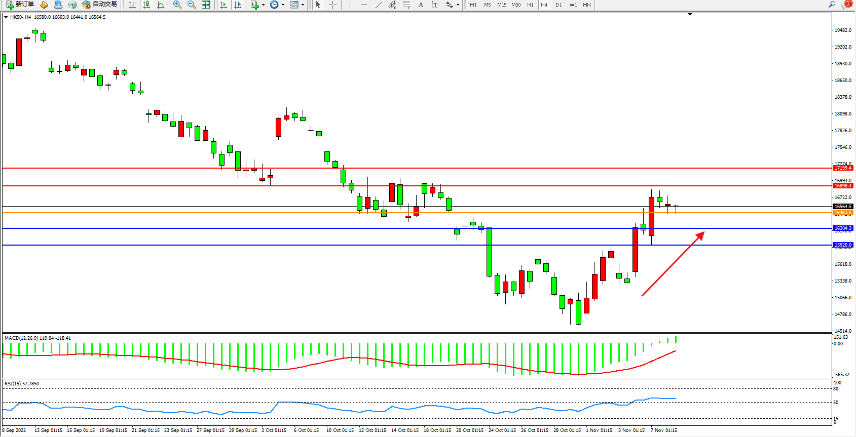 香港恒生指数11月8日(周二)收盘下跌38.6点,跌幅0.23%,报16557.31点;连续反弹的港股止步上涨行情,市场情绪趋于谨慎。恒指窄幅震荡最终收跌0.23%,恒生科技指数盘中一度跌2.5%,收跌1.56%。南下资金全日逆势净流入57.43亿港元,大市成交额较昨日明显缩量至1047亿港元。澳门恢复防疫常态化,濠赌股全天表现强势,有色金属股延续昨日上涨行情,金力永磁尾盘飙涨近18%;三叶草生物涨超46%,盘中一度涨逾90%,旗下新冠候选疫苗注册申请预计四季度完成。