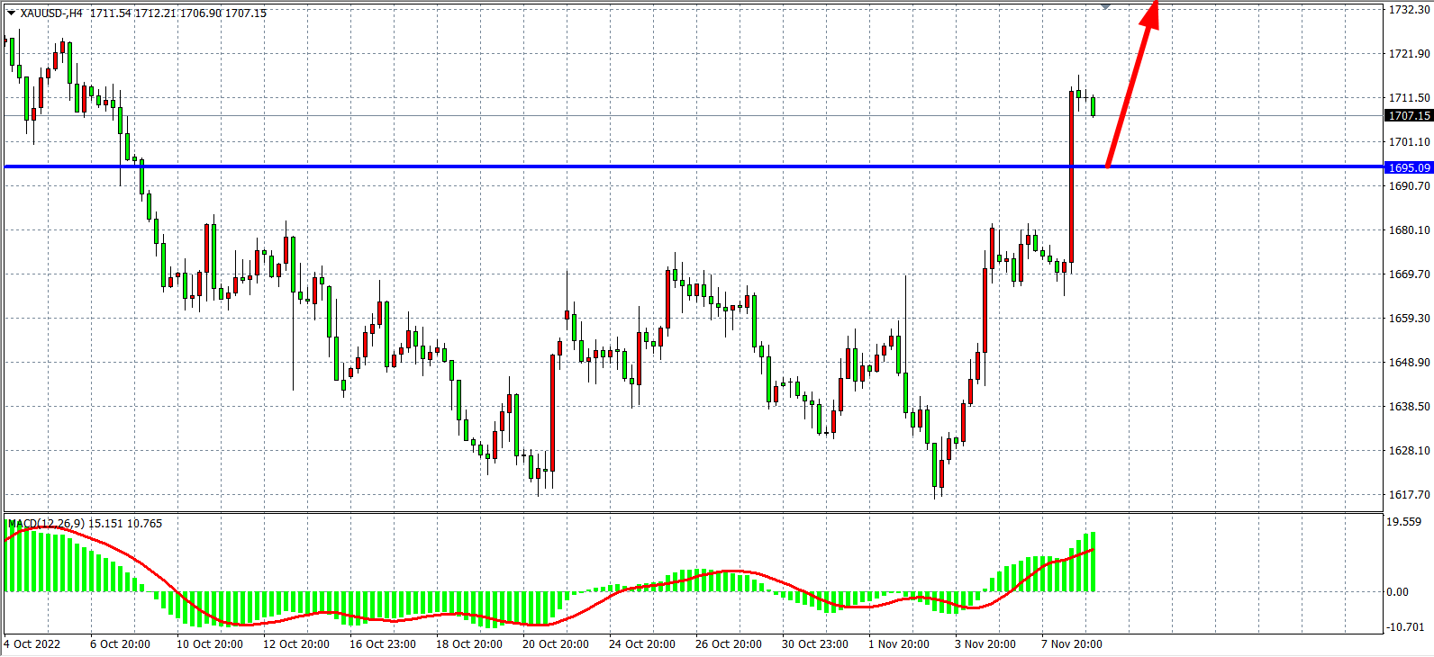 交易策略:在1695.00之上看涨,目标1720.00 1735.00