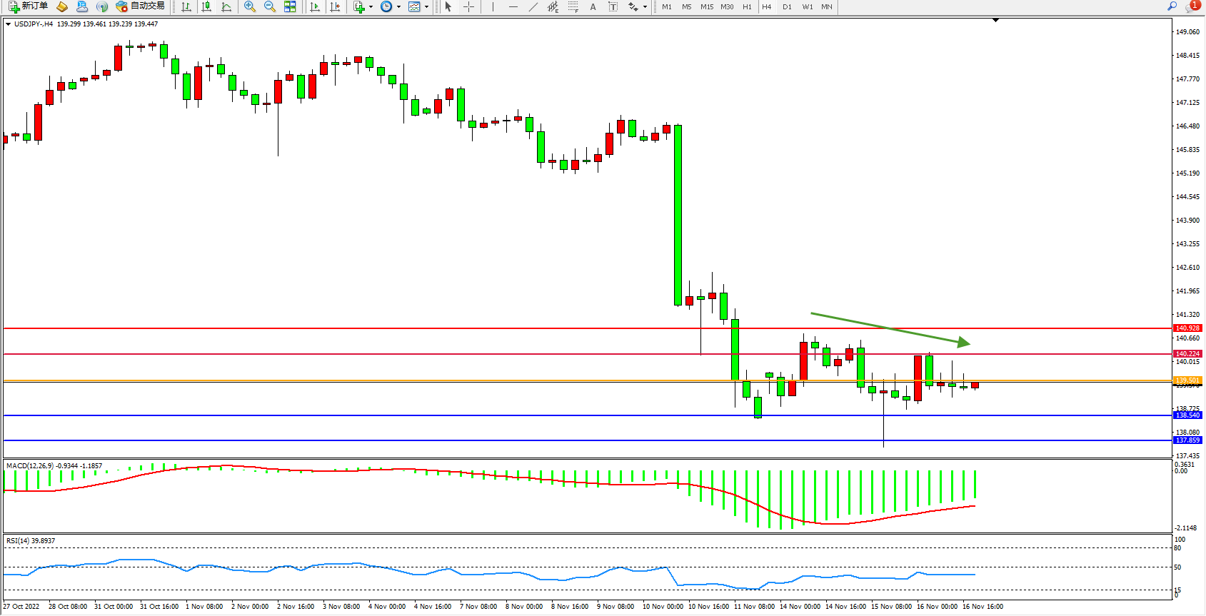 交易策略:139.501下方看跌,目标138.540、137.859
