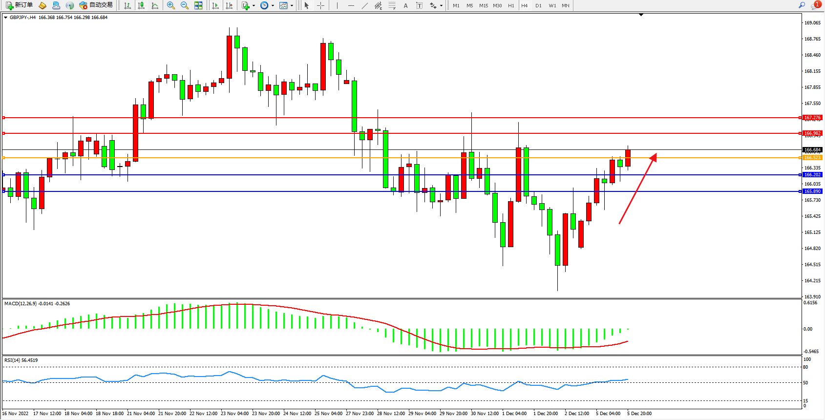 交易策略:166.523上方看涨,目标166.982、167.276