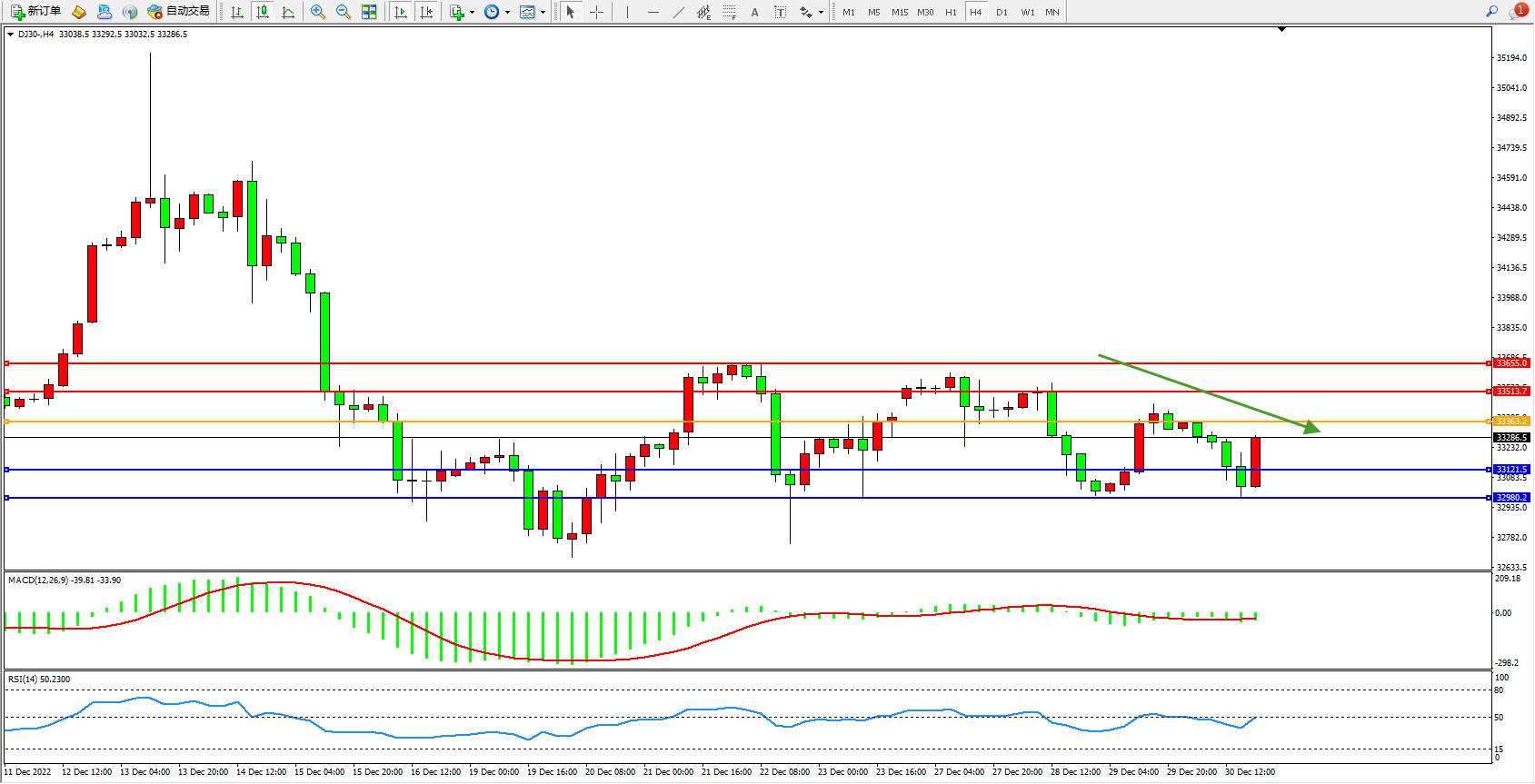 道琼斯指数12月30日(周五)收盘下跌73.55点,跌幅0.22%,报33147.25点;美股在2022年的最后一个交易日小幅收跌。道琼斯工业指数全年累跌8.78%,随着投资者寻找美联储加息周期可能结束的迹象,美元已经缩减了涨幅。自3月以来,美联储已累计加息425个基点,以试图遏制不断上升的通胀。