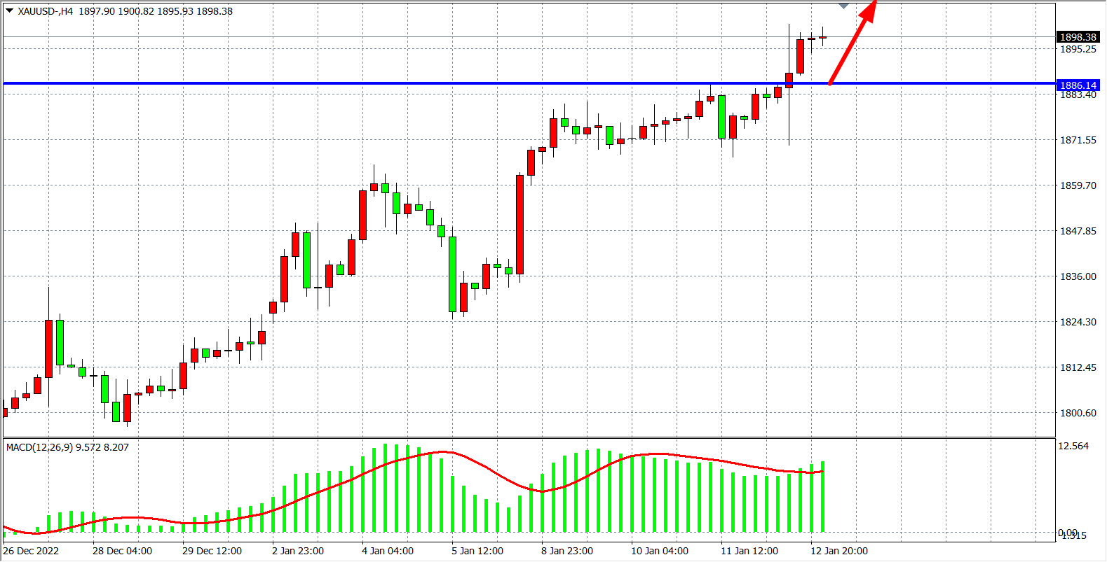 周四(1月13日)美国CPI同比上升6.5%,符合预期,低于11月份的7.1%,在缓步降温的CPI数据的刺激之下,现货黄金短线一度暴跌近14美元,随后迅速回升,一度突破1900关口,为去年5月来首次,另外,金价在费城联储主席哈克讲话期间再次回落,一度跌至1890美元/盎司下方,而后有所回升,最终仍收涨1.14%。市场开始降低美联储在未来几次政策会议上进一步加息两次的预期,美国国债收益率下降,美元走弱,无息资产的黄金因此受到买盘支撑,当前已重拾上涨动能。