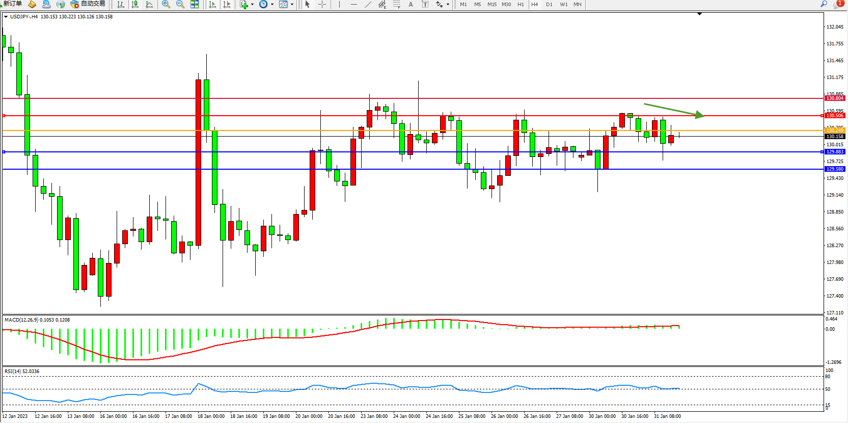 交易策略:130.249下方看跌,目标129.883、129.580