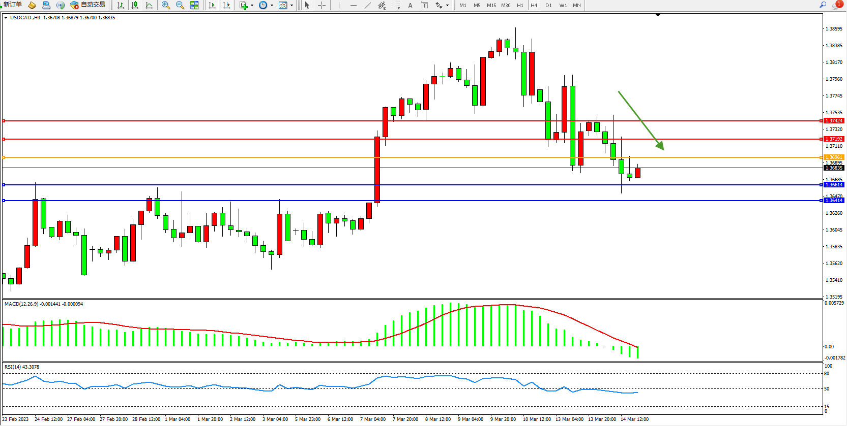 交易策略:1.36961下方看跌,目标1.36614 1.36414