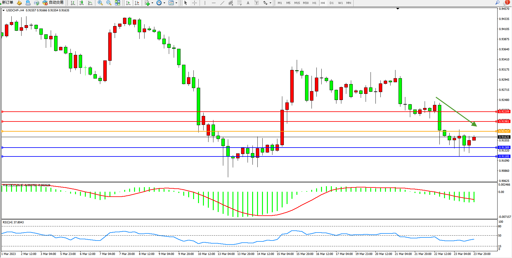 交易策略:0.91757下方看跌,目标0.91389 0.91185