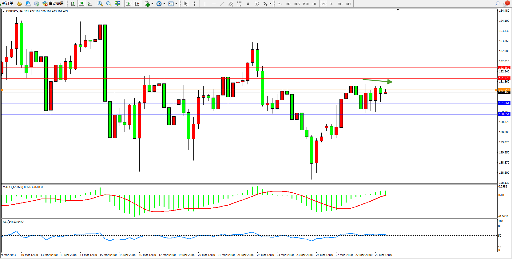 英镑兑日圆维持161.469附近震荡,英国央行行长表示,利率制定者应将控制通胀置于银行忧虑之前考虑;货币市场目前认为,英国央行5月再加息25个基点的可能性为61%.