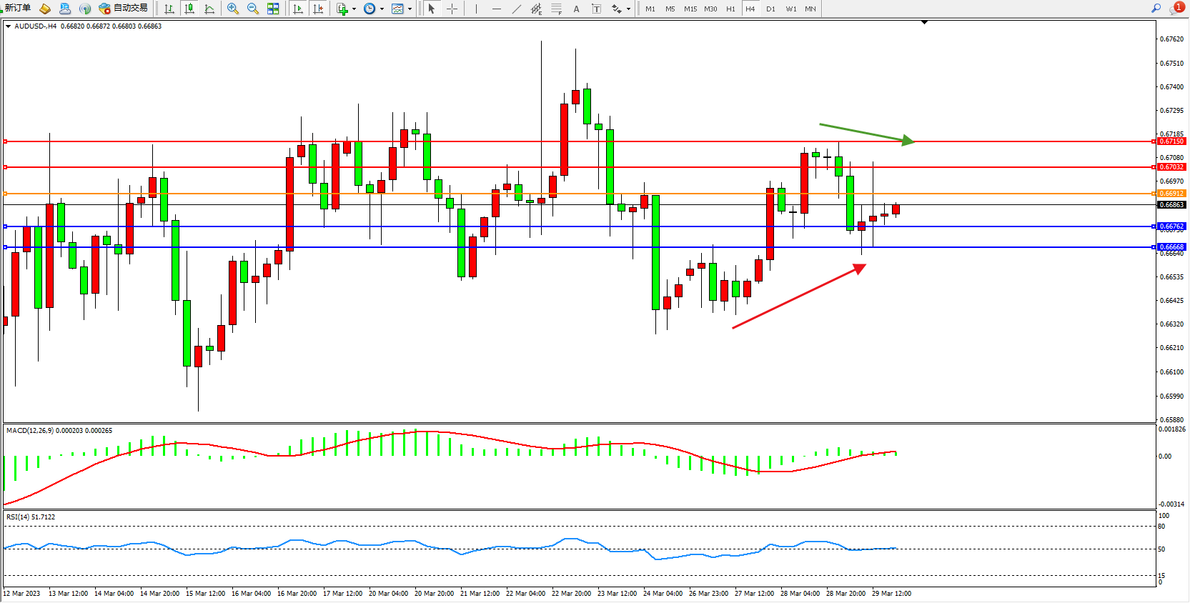 澳元兑美元维持0.66863附近震荡,澳洲联储有足够的理由证明暂停加息是合理的。在1月疲软的通胀数据发布后,2月的通胀数据进一步下降。再加上美国和欧洲最近的银行业困境,以及澳洲联储最近的政策会议纪要确认了暂停加息的讨论,澳洲联储有足够的理由证明暂停加息是合理的。