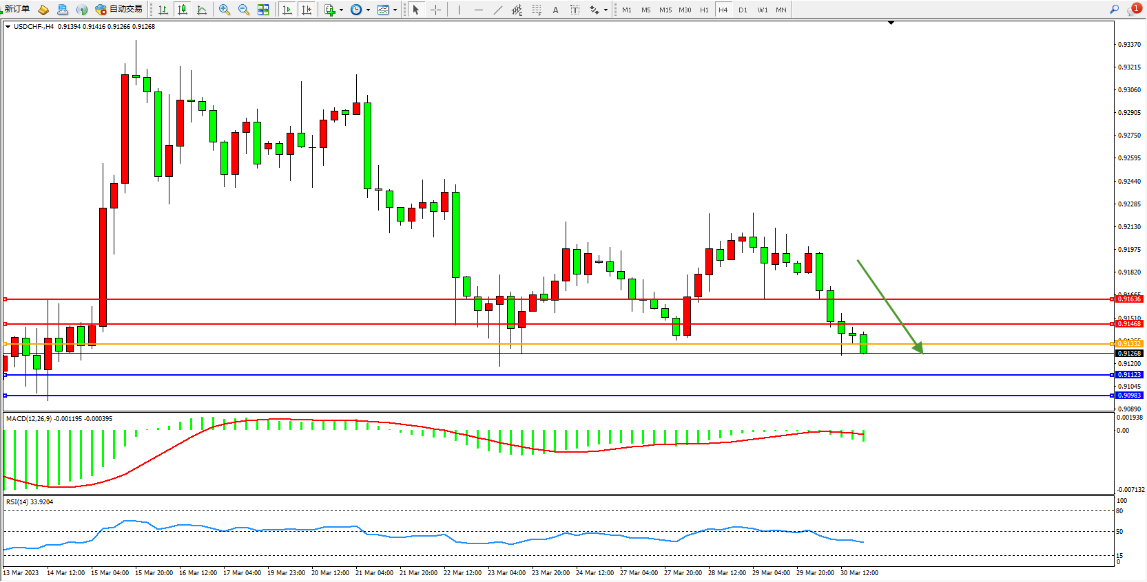 交易策略:0.91332下方看跌,目标0.91123  0.90983