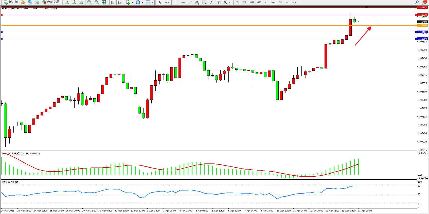 欧元兑美元维持1.10459附近震荡,德国3月CPI终值与初值一致,3月份总体年度通胀率的下降在很大程度上要归功于基数效应。核心通胀仍是一个问题,这将使欧洲央行继续收紧货币政策,至少目前如此。