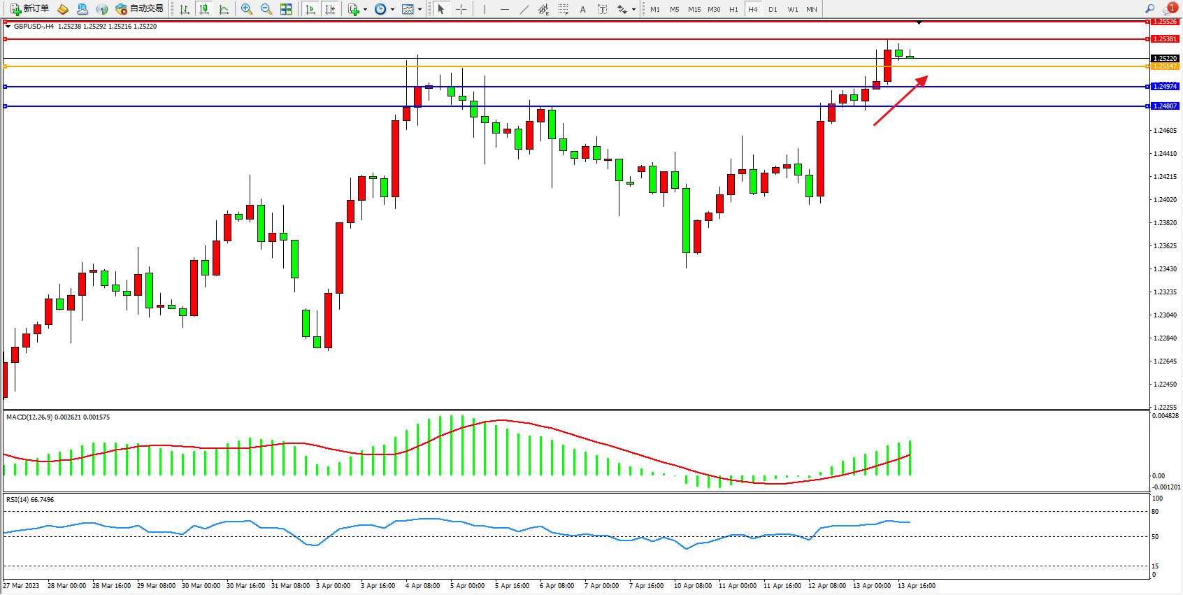 英镑美元GBPUSD ——4小时K线图显示: