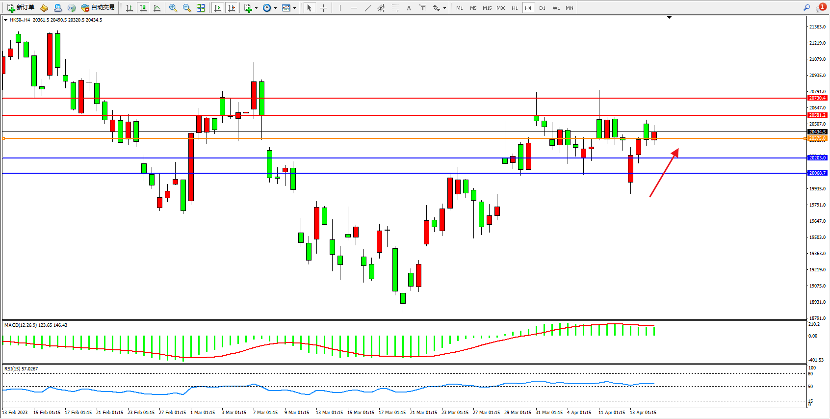 香港恒生指数4月14日(周五)收盘上涨94.33点,涨幅0.46%,报20438.81点;港股午后拉升再度转涨,三大指数全天呈现震荡行情,恒指涨0.46%,国指涨0.57%,恒生科技指数涨0.1%。本周三大指数表现相对平淡,惟恒生科技指数周跌1.74%。大型科技股涨跌参半,网易涨3%,阿里巴巴、腾讯小幅上涨,行业迎利好消息,半导体股继续活跃,龙头中芯国际尾盘涨超7%刷新阶段高价;南下资金全日净流入51.14亿港元,大市成交额为1083亿港元。