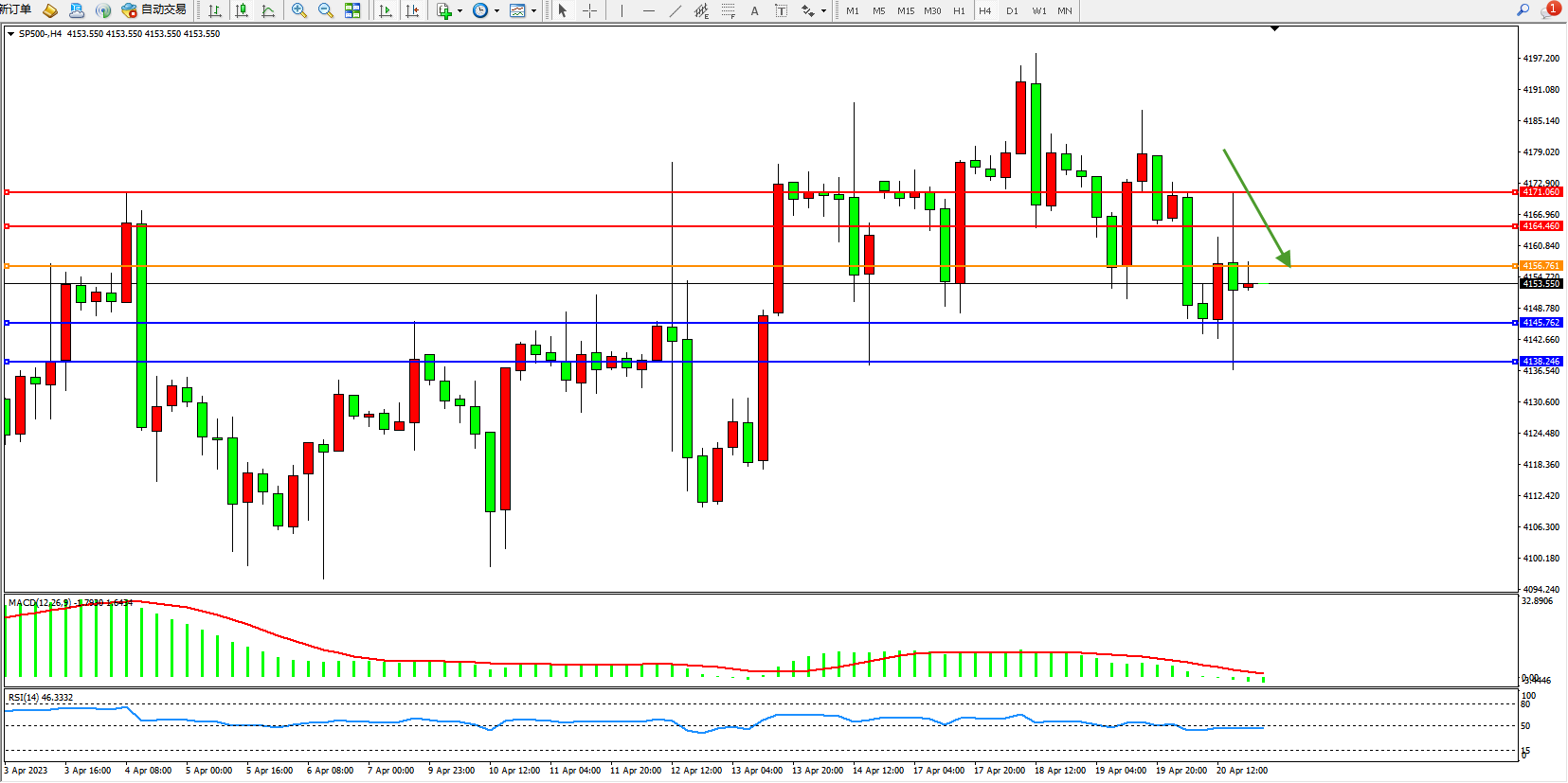 标普500指数4月20日(周四)收盘下跌24.33点,跌幅0.59%,报4130.19点;美国3月份二手房销售下降幅度超过预期,这表明尽管有一些企稳迹象,但房地产市场的基础仍然不稳。继2月份出现大幅增长后,3月份房屋成交合约减少2.4%,折合成年率为444万套。