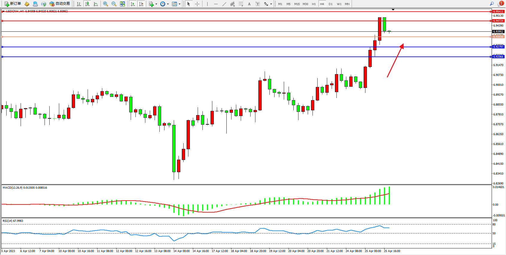 交易策略:6.93550上方看涨,目标6.94724  6.95411