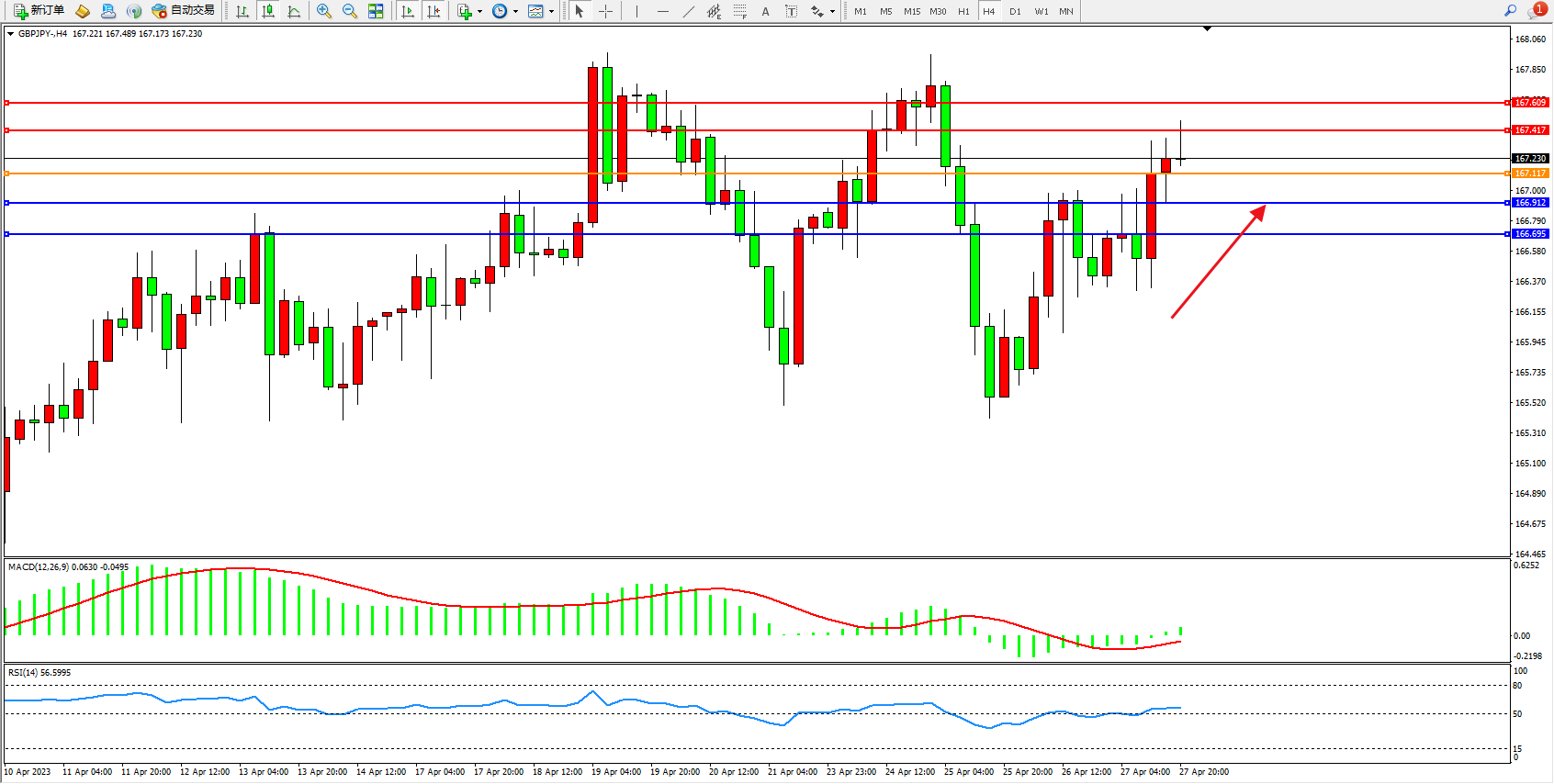 阻力位:167.417  167.609