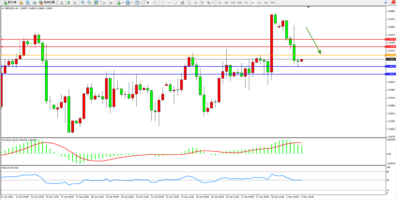交易策略:1.25025下方看跌,目标1.24810 1.24663