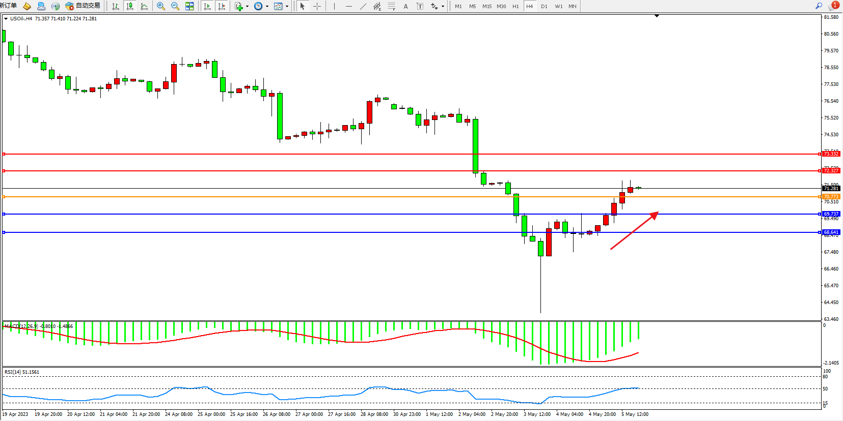 原油维持71.281附近震荡,市场担心美国经济疲软和新一波银行业动荡蔓延,油价有望连续第三周下跌,本周累计跌幅近9%。此外,亚洲地区进口显著放缓也给油市带来压力。