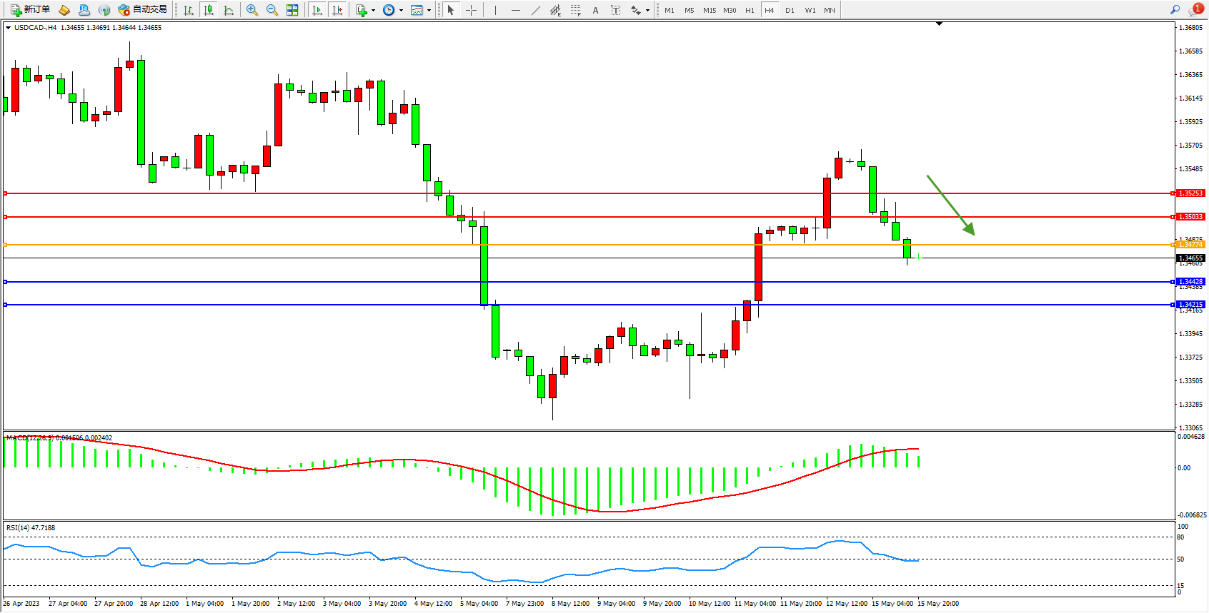 美元兑加元维持1.34774附近震荡,如果加拿大出现进一步的反通胀,市场可能押注加拿大在近期降息,未来几天的价格走势很大程度上可能取决于加拿大4月通胀数据对加拿大央行货币政策的影响,以及由此对美元兑加元和其他加元货币对的影响。