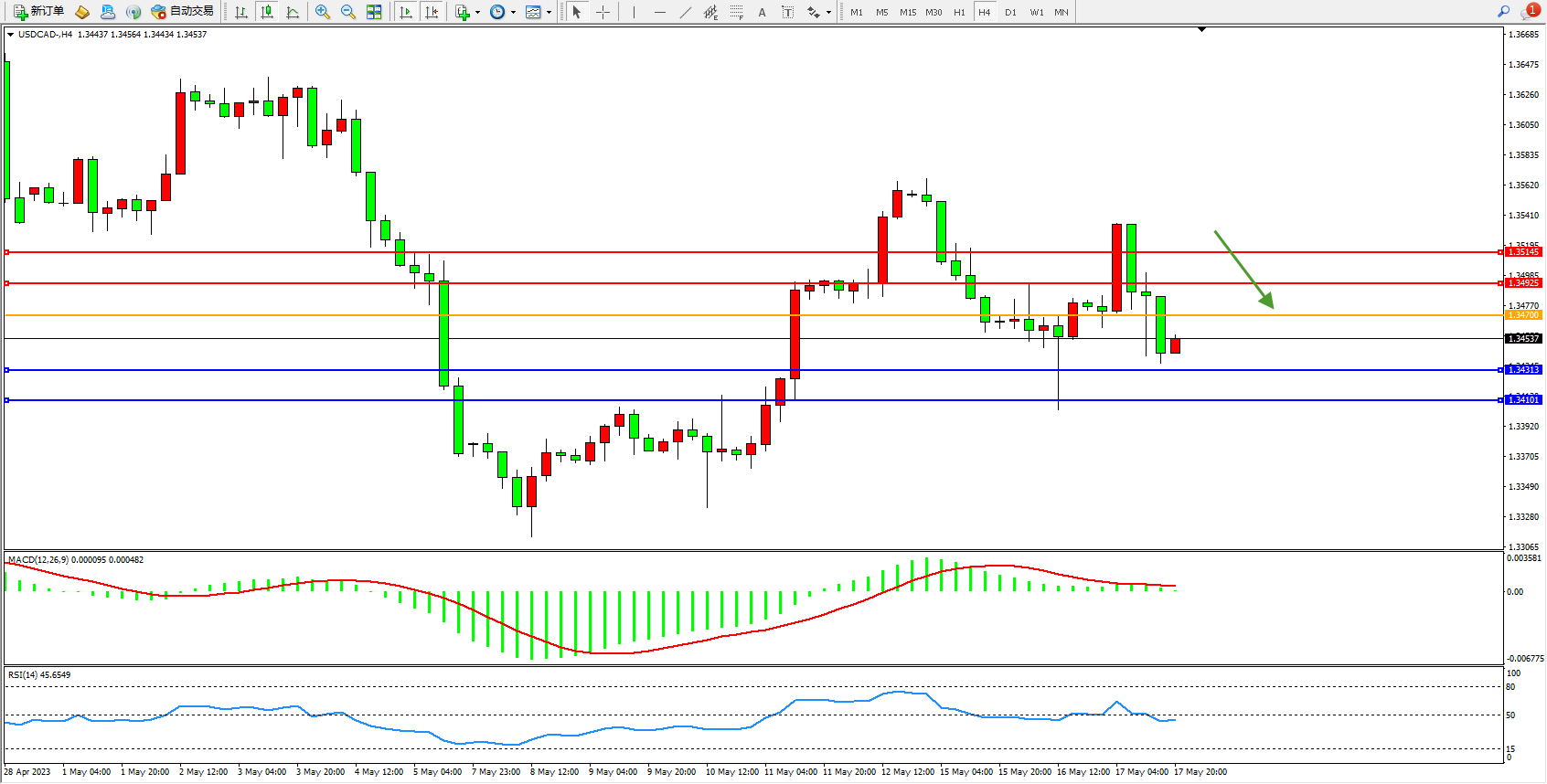 美元兑加元维持1.34537附近震荡,美国原油库存意外增加,引发需求担忧,尽管国际能源署的最新预测限制了油价跌势。美国至5月12日当周EIA原油库存增幅录得2023年2月17日当周以来最大。