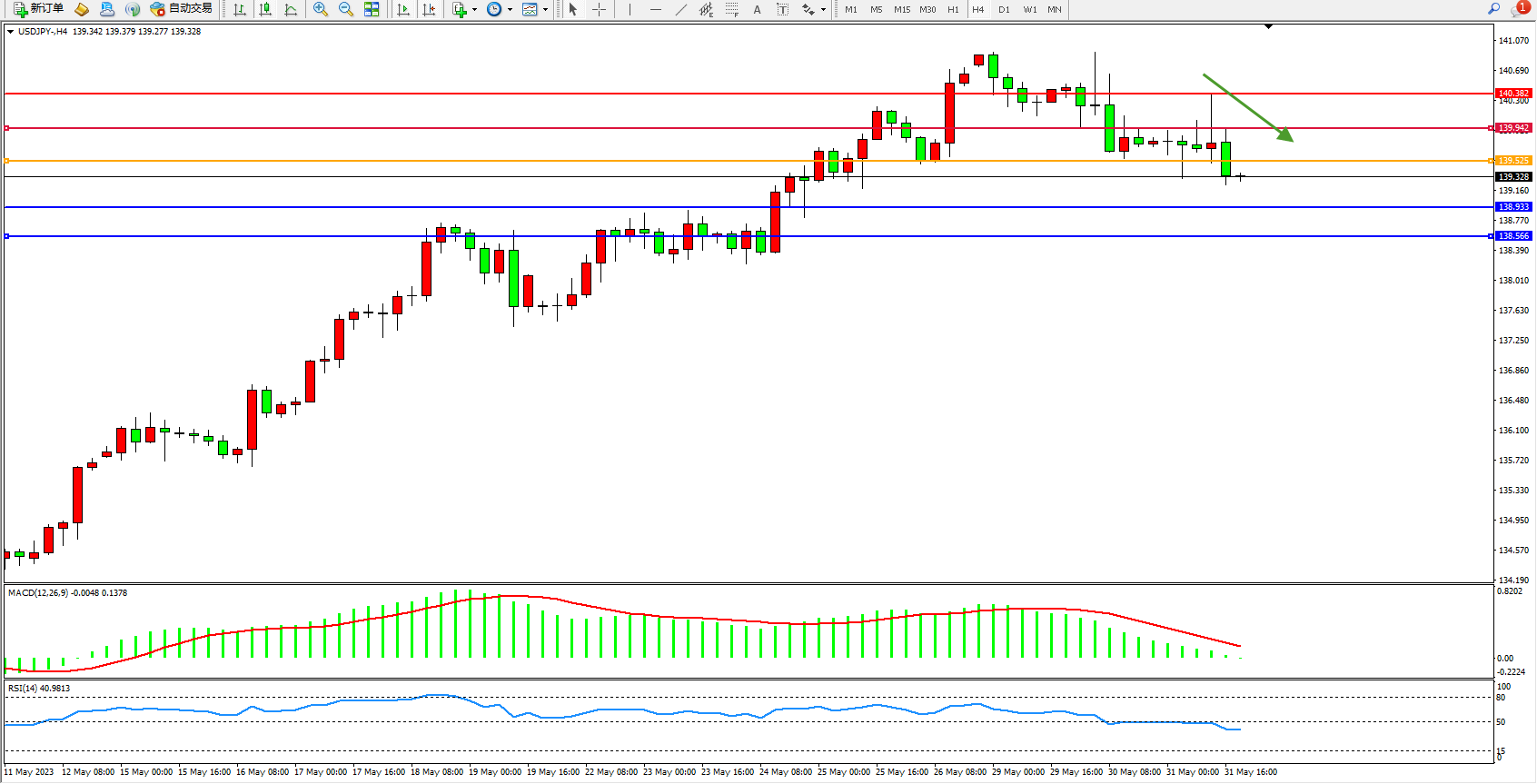 交易策略:139.525下方看跌,目标138.933 138.566