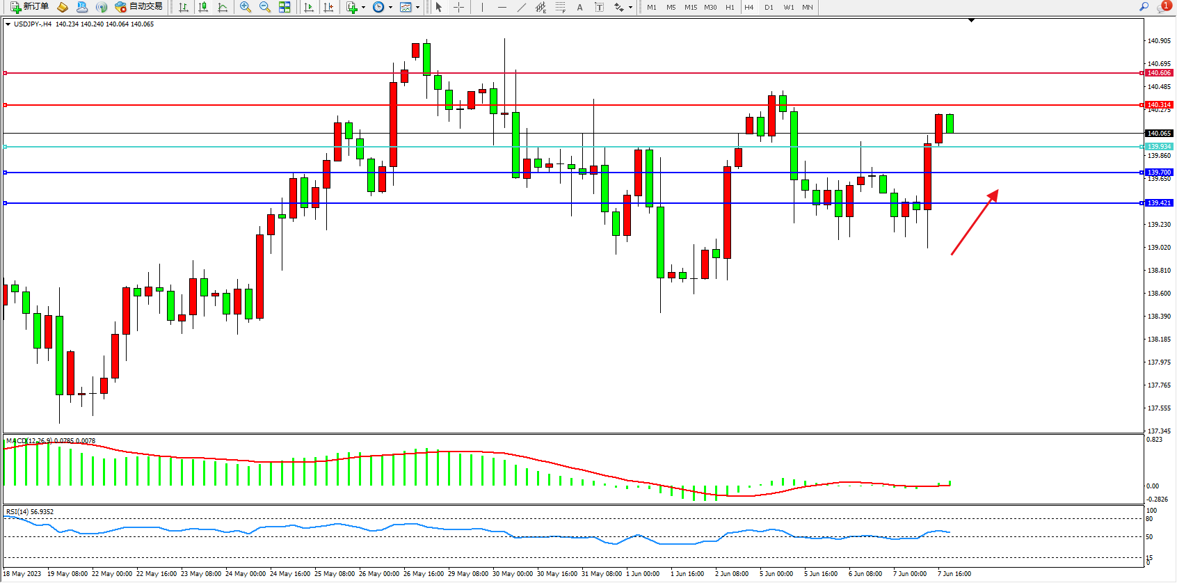 阻力位:140.314 140.606