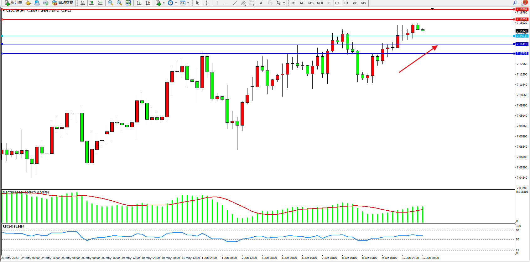 备选策略:7.15036下方看跌,目标7.14418  7.13736
