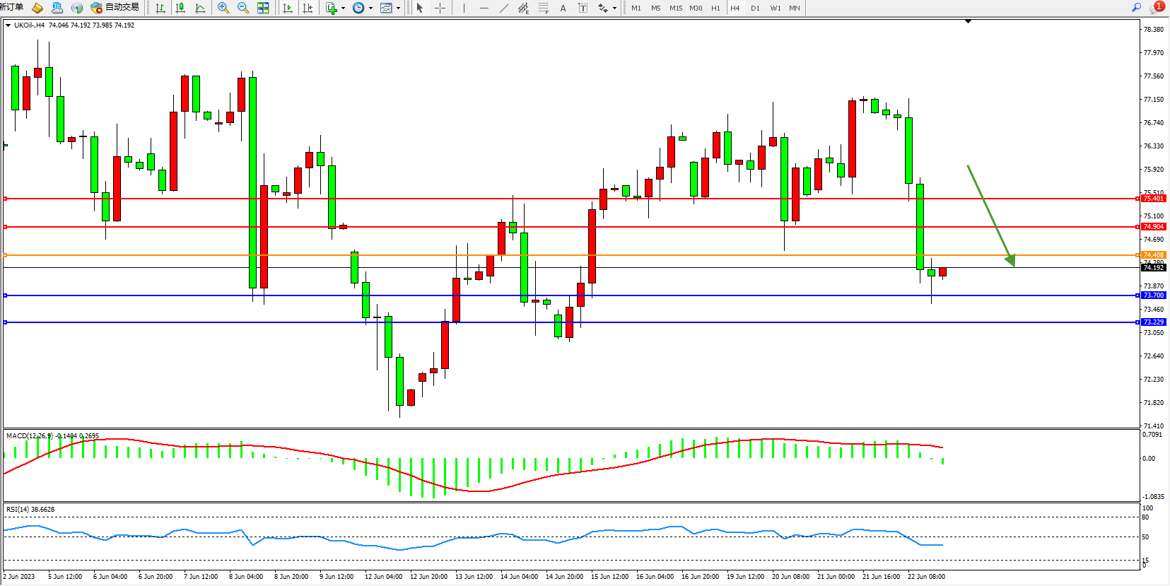 布油维持74.192附近震荡,EIA报告:除却战略储备的商业原油库存减少383.1万桶至4.63亿桶,降幅0.82%。美国至6月16日当周EIA战略石油储备库存为1983年8月26日当周以来最低。