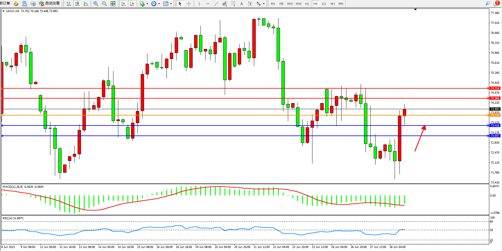 布油维持73.993附近震荡,美国至6月23日当周原油出口量为2023年2月24日当周以来最高;美国至6月23日当周除却战略储备的商业原油库存为2023年1月27日当周以来最低。