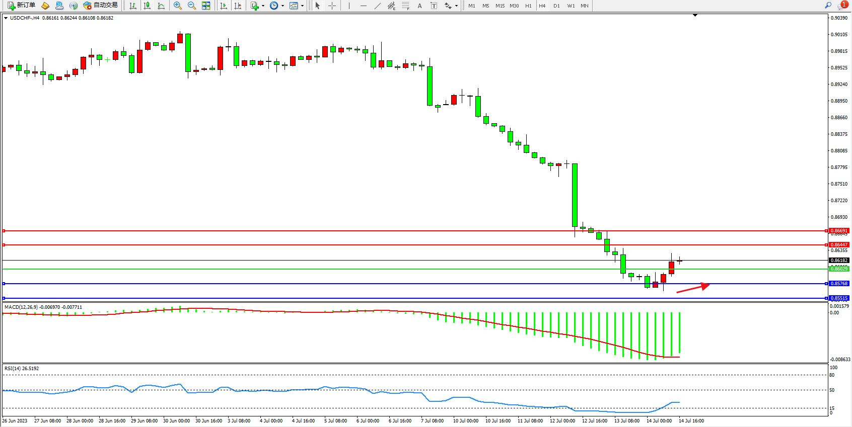 4小时图看:低位多头动力反转震荡上行,市场多头情绪逐渐涌现,短期有迹象继续向上移动态势,MACD指标处于空头区域低位震荡,RSI指标处于空头区域低位缓慢上行;