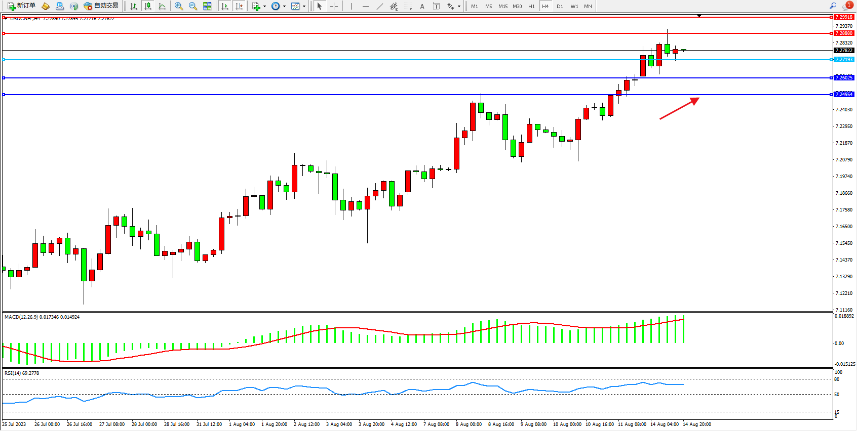 USDCNH:高位上扬 USDCNH  HKDCNH