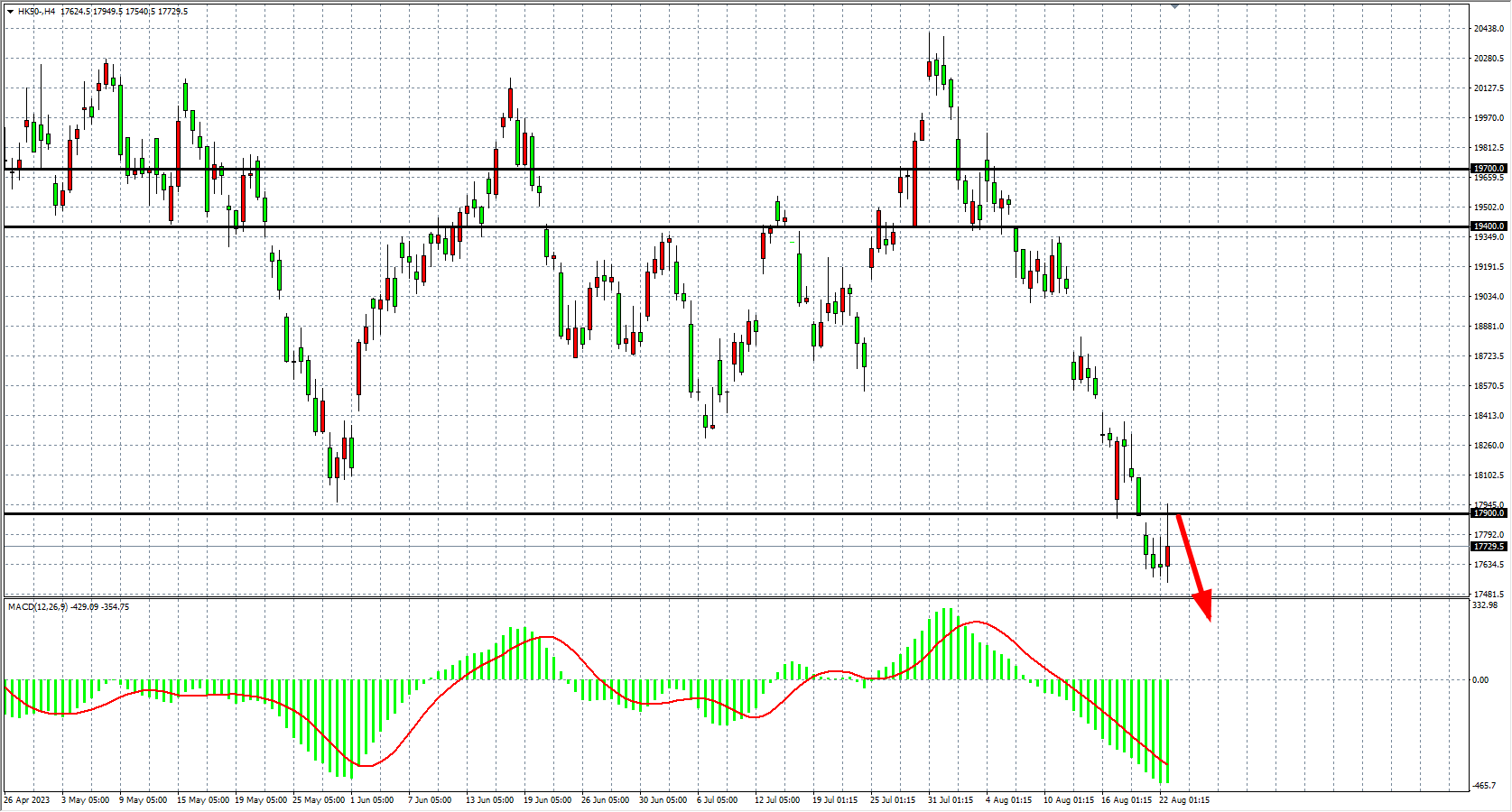 4小时图看,恒指维持在17900下运行,MACD量能继续于零轴下方放量,阻力关注17900-18300。