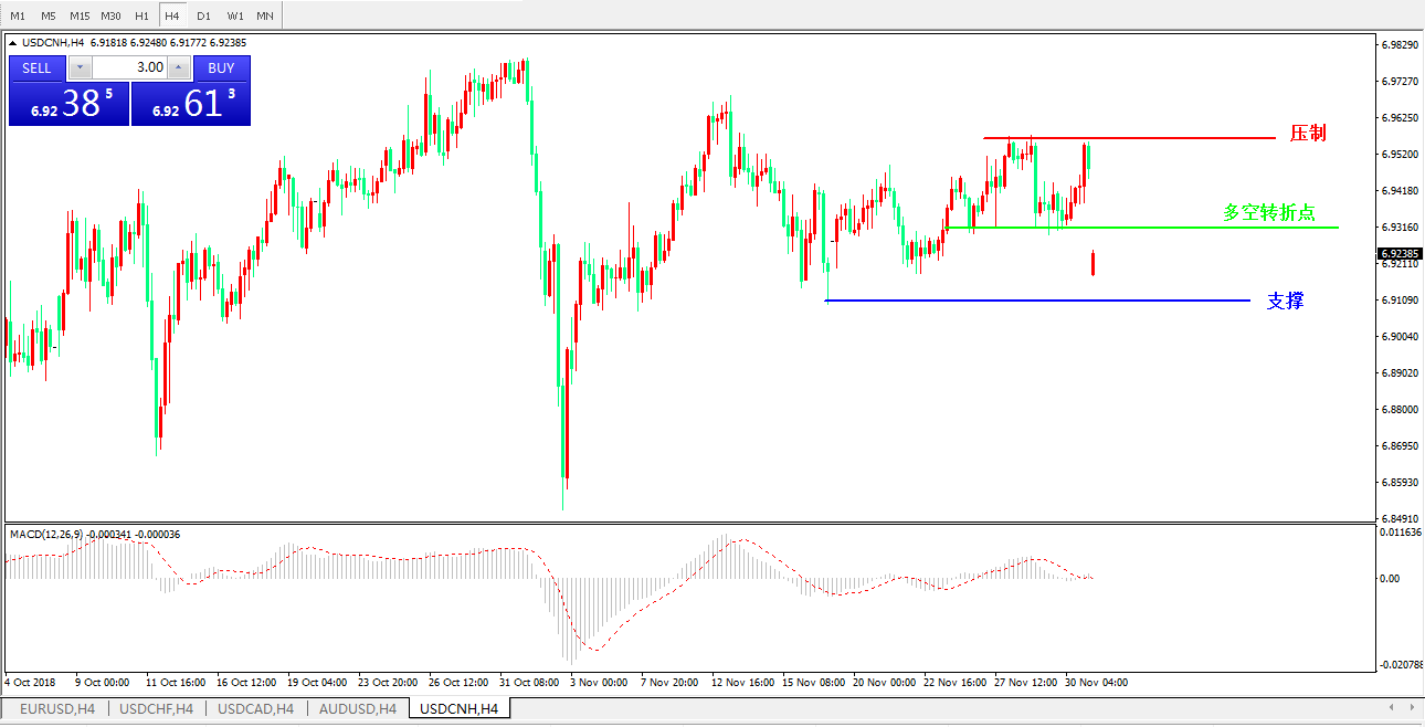 交易策略6.9322之下,看跌,目标价位为6.9088,然后为 6.8870